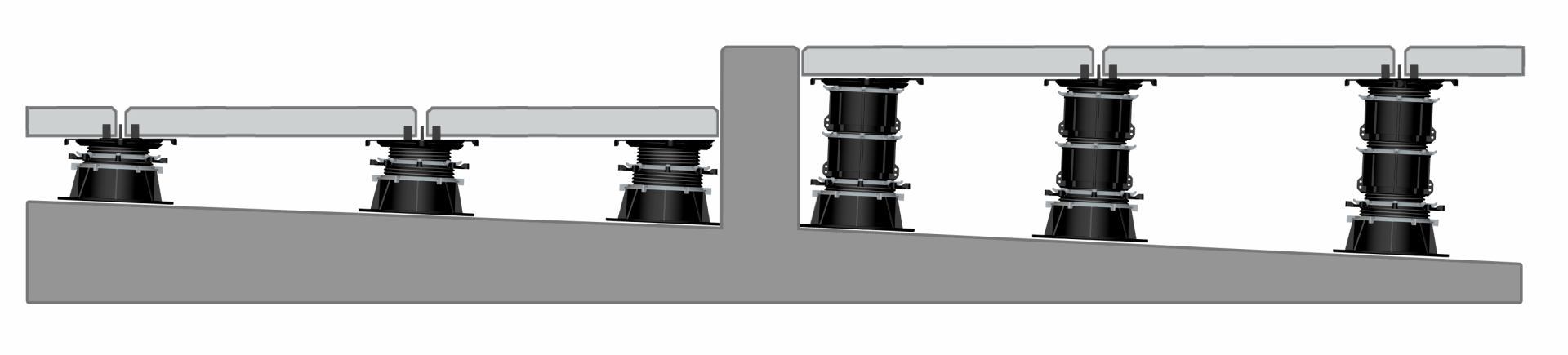 - Slope correctors at top and base of pedestal